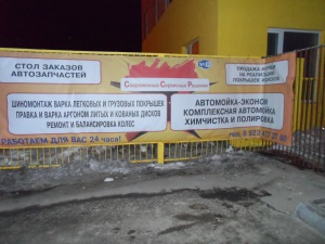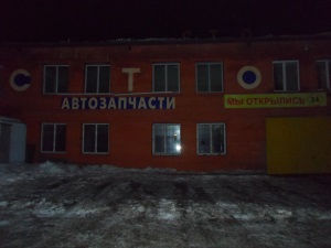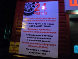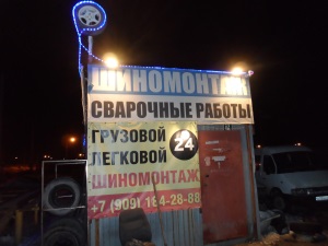 Автокомплекс не выглядит супер-презентабельным, но везде крупно написано "24 часа" и телефоны. Сразу звонить-будить не стали, но потом днем мне по телефону подтвердили: да, круглосуточно, дежурный всегда есть. Ходовая, движки, сварка, шиномонтаж (в т.ч. грузовой), кузовного ремонта пока нет.