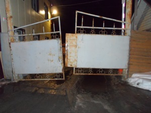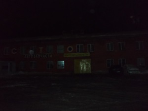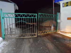 Тоже закрытые ворота, на этот раз - на замок. Каких-либо способов связи, вроде кнопки вызова, или телефонов, обнаружить не удалось. Через щель в воротах сделана фотография территории - вполне возможно, что днем это хорошее СТО. Но не круглосуточно.